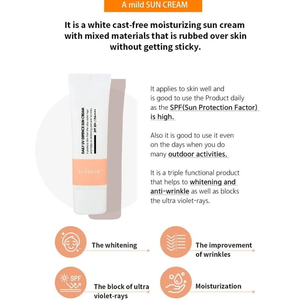 Kem chống nắng Daily UV Defence Sun (SPF50+/PA++++) 50ml Hàn Quốc Blansen