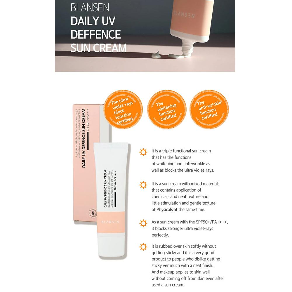 - Kem chống nắng Daily UV Defence Sun (SPF50+/PA++++) 50ml Hàn Quốc Blansen
